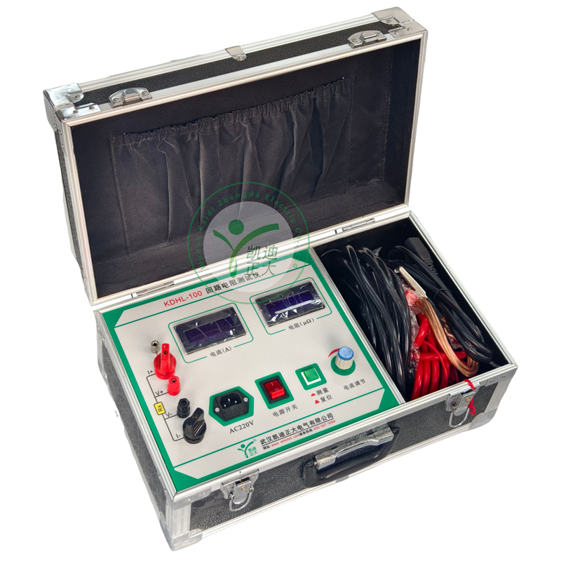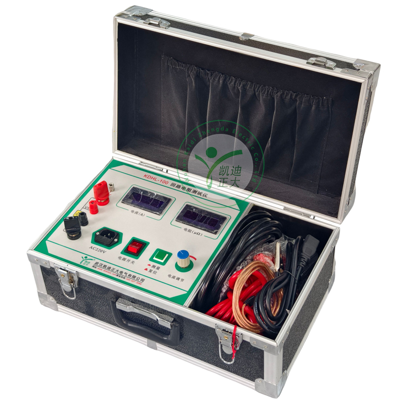 KDHL-100回路電阻測試儀是采用數字電路技術和開關電源技術相結合設計而成。它適用于開關控制設備的接觸電阻、回路電阻的測量。其測試電流采用國家標準推薦的直流100A。可在電流100A的情況下直接測得回路電阻和接觸電阻,并用數字顯示出來。該儀器測量準確、性能穩定,適合電力、供電部門現場高壓開關維修和高壓開關廠回路電阻測試得要求。