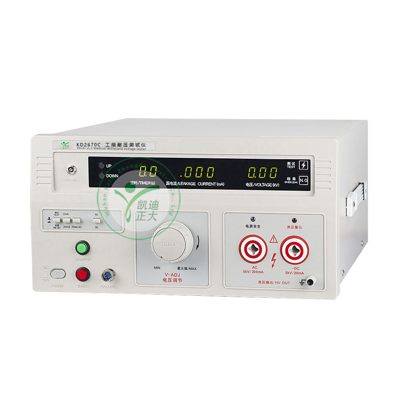 KD2670C工頻耐壓試儀是通用型的高壓測(cè)試儀器,廣泛用于電工器材、膠木電器、變壓器、電源線、電能表、電機(jī)、電源插頭座、電纜線等的耐壓測(cè)試,以及各種電子電氣產(chǎn)品的耐壓測(cè)試