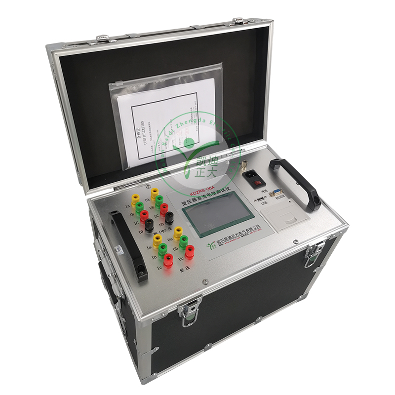 變壓器直流電阻的測量是變壓器制造中半成品、成品出廠試驗、安裝、交接試驗及電力部門預(yù)防性試驗項目,能有效發(fā)現(xiàn)變壓器線圈的選材、焊接、連接部位松動、缺股、斷線等制造缺陷和運行后存在的隱患。KDZRS-20A直流電阻測試儀是測量變壓器、互感器、發(fā)電機、電動機繞組直流電阻的快速測試設(shè)備,適用于大容量星接變壓器三相同時測量及三相五柱和低壓角接變壓器的助磁測量,節(jié)省時間,提高檢修效率