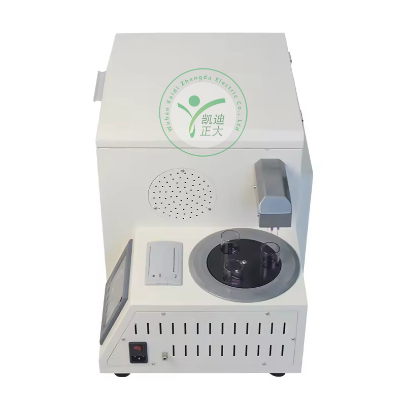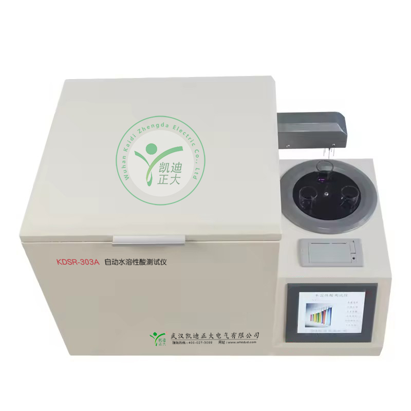 我公司生產的KDSR-303A型自動水溶性酸測試儀(比色法)是根據《GB/T7598-2008運行中變壓器油水溶性酸測定法》及相關標準設計制造。采用大屏幕彩色液晶顯示器,利用微處理器控制,可以根據用戶的設定條件自動完成加熱、恒溫、振蕩、取樣、測試、清洗、打印等功能,可以一次性測量1-3個樣品,縮短了用戶的測試時間,提高了工作效率,減輕了工作人員的勞動強度;并支持無線傳輸功能。