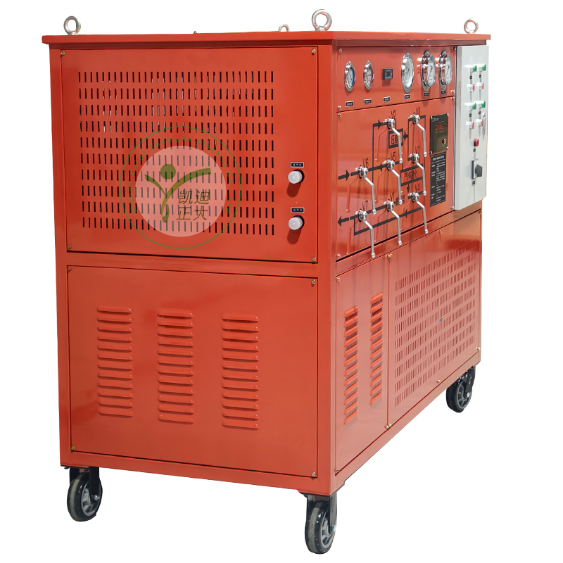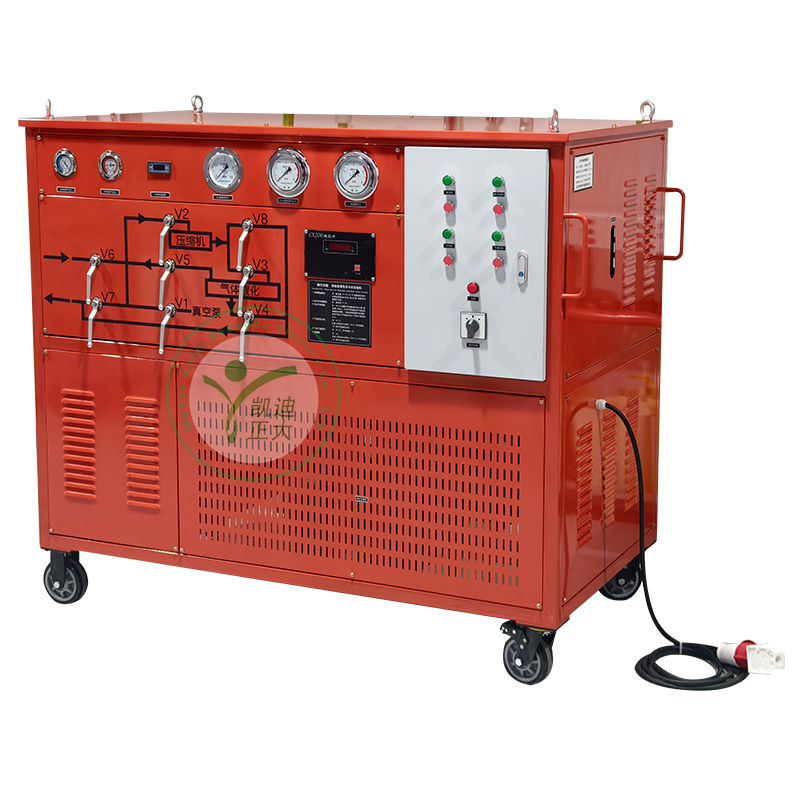 本裝置由SF6氣體回收凈化裝置組成。涉及的產(chǎn)品的主要優(yōu)點(diǎn)為能直接將回收的SF6氣體以液態(tài)的形式貯存入容器,并能將GIS內(nèi)的殘壓回收至53Kpa,擁有較小的體積,便于移動(dòng)的放置,擁有較快的抽真空速度,能對(duì)回收的SF6氣體進(jìn)行干燥和過(guò)濾,還能回充SF6氣體至SF6電氣設(shè)備。