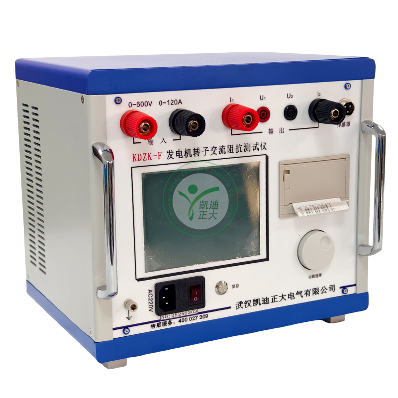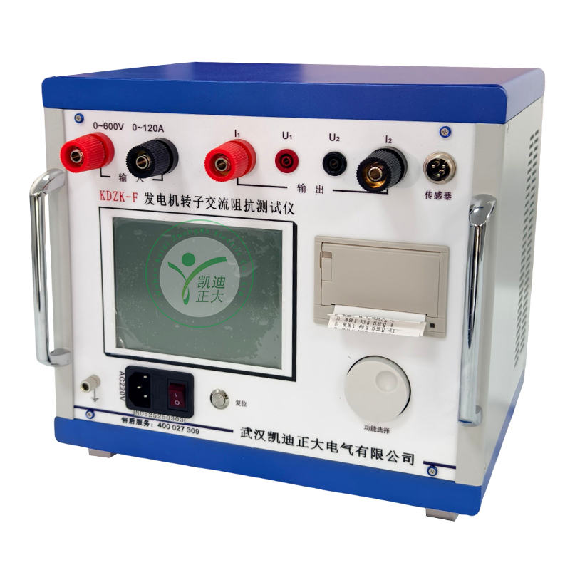 KDZK-F發(fā)電機(jī)轉(zhuǎn)子交流阻抗測試儀是判斷發(fā)電機(jī)轉(zhuǎn)子繞組有無匝間短路的專用儀器,可以全自動(dòng)、手動(dòng)(單向或雙向)測量轉(zhuǎn)子繞組的電壓、電流、阻抗、功率、相位角等參數(shù)。