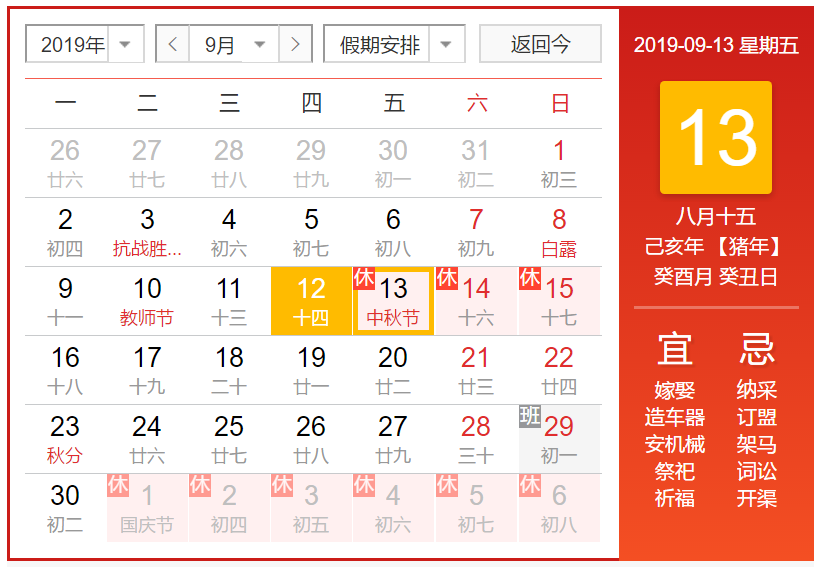 根據(jù)國(guó)務(wù)院2019年中秋節(jié)放假通知: