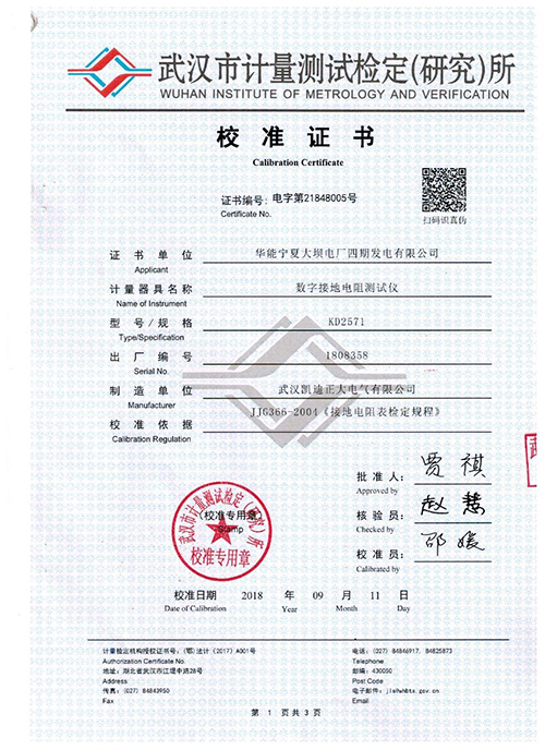 上一篇:武漢凱迪正大KDDT-10A接地引下線導通電阻測試儀校準證書