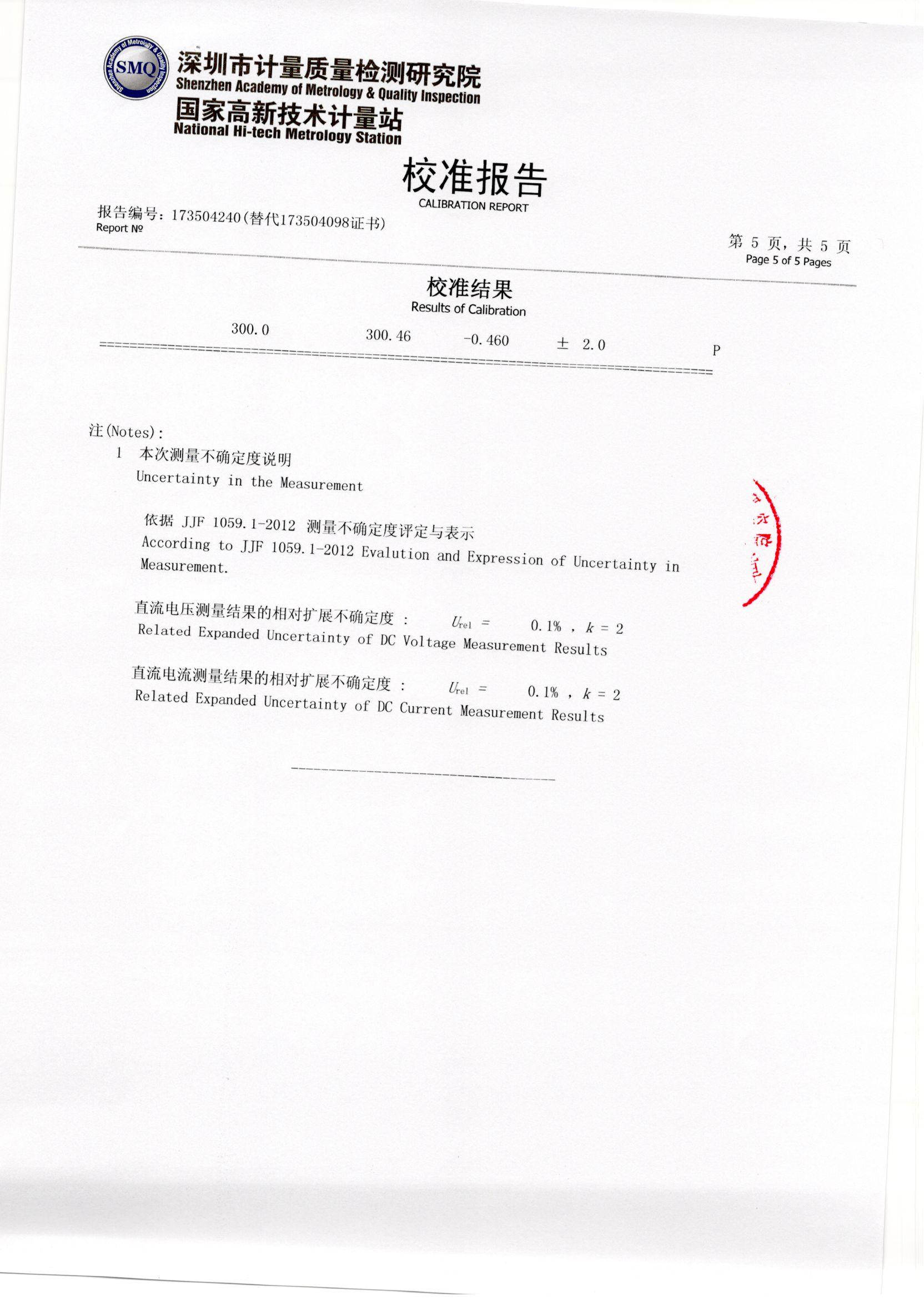 應中廣核遼寧紅沿河核電有限公司的需求,將武漢凱迪正大電氣公司生產的KDZD880(110V300A)智能蓄電池放電儀出具國家高新技術研究院的計量報告后才能使用。校準報告:173504098證書號,出廠編號:KD15042815,資產編號:500056775,校準依據:參考JJF158-2016數字多用表校準規范JJF(軍工)108-2015電池充放電測試儀校準規范。嚴格出具檢定合格報告。