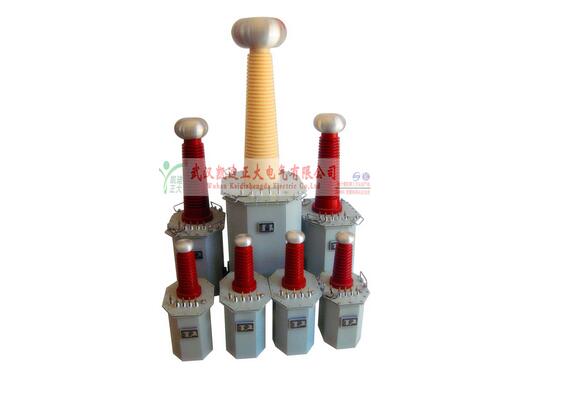 高壓試驗變壓器的結構按外殼材料可分為絕緣外殼和金屬外殼兩種。前者絕緣尺寸較小且不需套管,因此整個變壓器的尺寸和重量都較小。后者按套管數量可分為單套管式和雙套管式兩種。單套管式的高壓繞組的一端接地,另一端經套管引出,常用于500kV及以下的試驗變壓器;雙套管式的高壓繞組中點接鐵芯和外殼,故高壓繞組對鐵芯和外殼、套管對外殼的絕緣都只有輸出電壓的一半,大大減輕了內、外絕緣的負擔,有利于減小變壓器的尺寸和重量。其外殼對地的電壓是輸出電壓的一半,不難用瓷支柱加以絕緣,因此它特別適用于額定電壓為750 kV及以上的試驗變壓器。