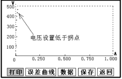 如果互感器拐點電壓未知,可根據經驗設定一個電壓(通常互感器變比越大則拐點電壓越高)。比如設定500V進行測試,如果曲線非常貼近X軸,則可根據拐點位置降低設置電壓為100V;如果曲線沒有到達拐點,即電壓到達或接近設定值400V時電流還只有幾個或幾十個毫安,則說明電壓設置過低,相應的升高設置電壓即可做出伏安特性曲線。