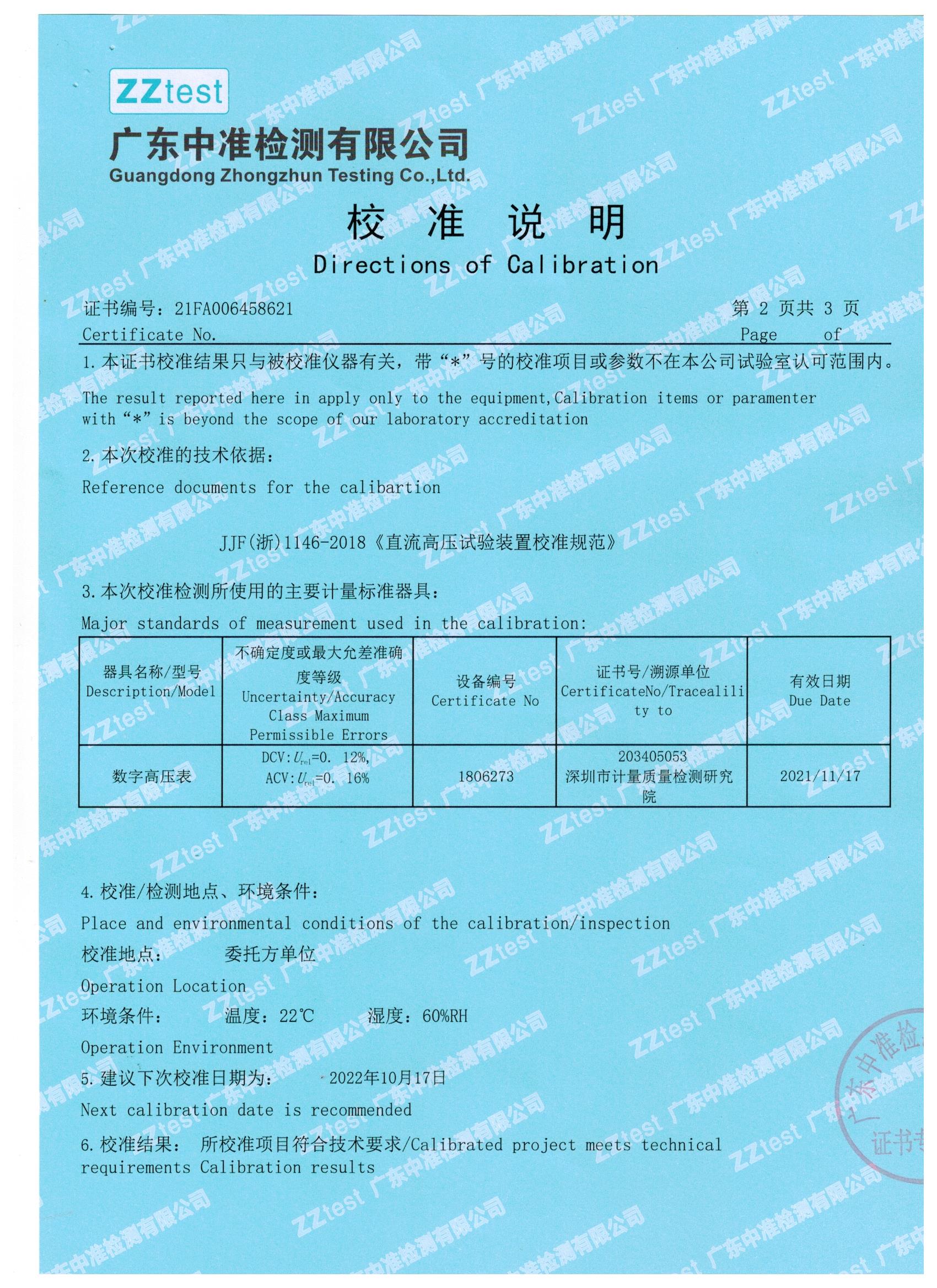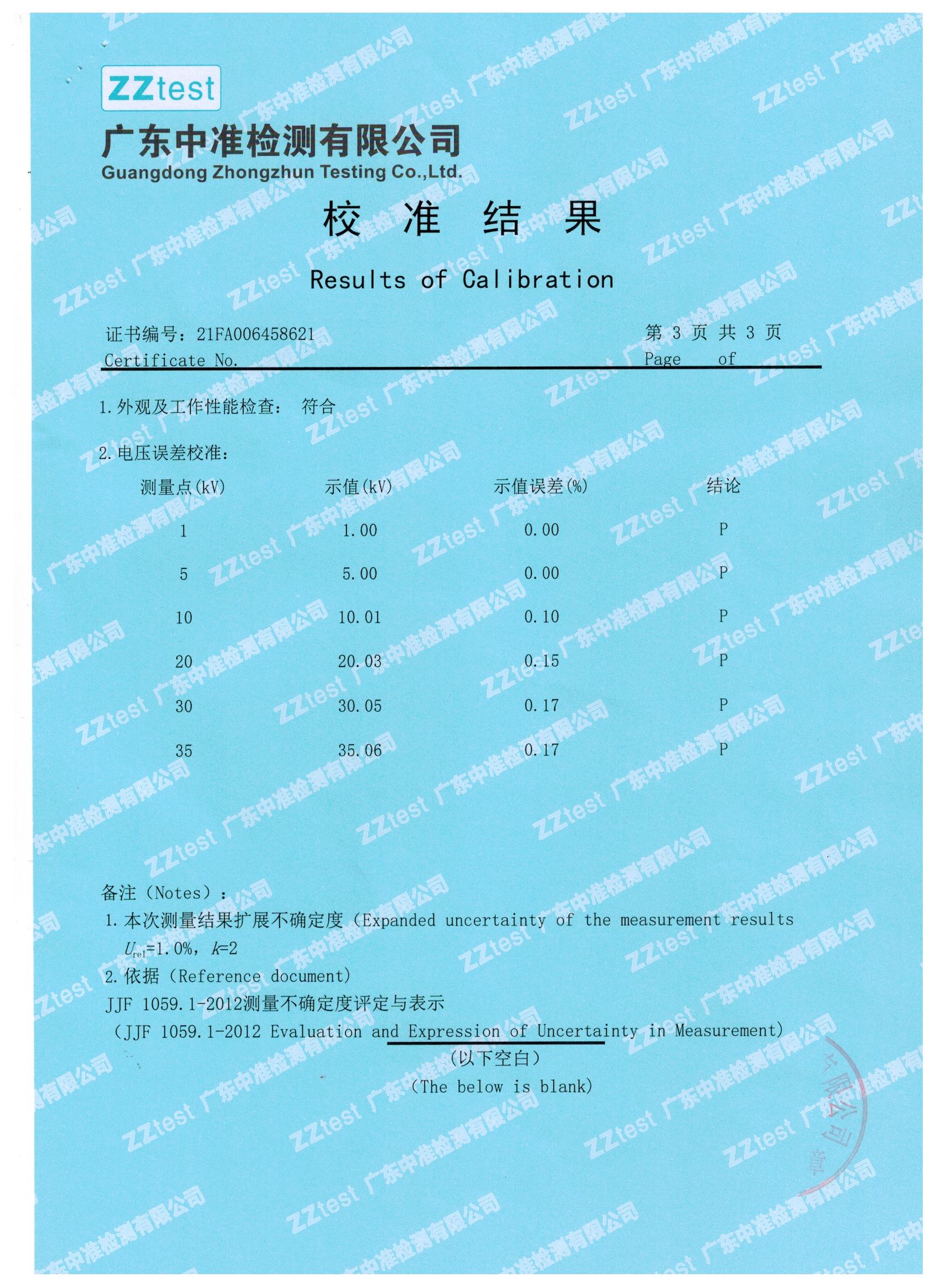 我們一直嚴把質量關,下面就是我們與江蘇偉拓力合作的過電壓保護器測試儀設備送檢結果