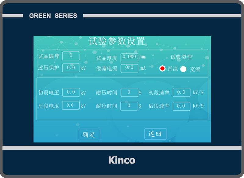 3、例如:設置初段電壓為:10kV,初段耐壓時間為10S;琢級電壓為:2kV,琢級耐壓時間為:5S;過壓保護為:50Kv;泄露電流為:50mA;