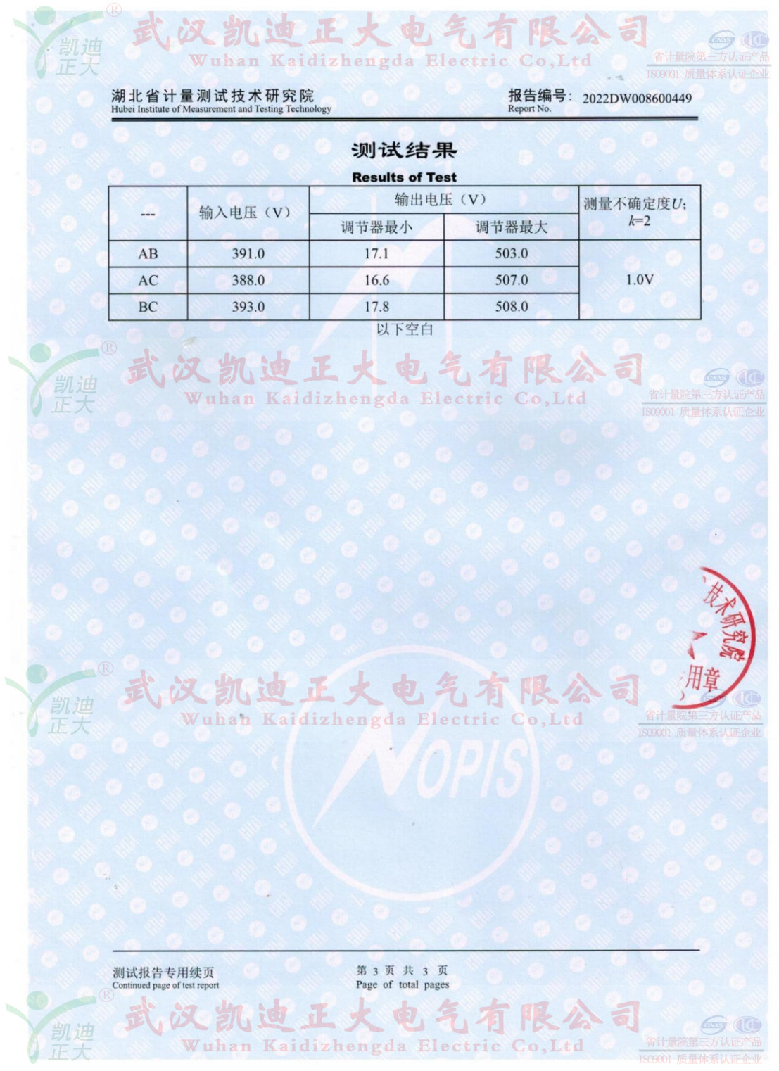 由于供應(yīng)速度、售后服務(wù)態(tài)度因素很快就收到了長(zhǎng)興電器集團(tuán)中直電氣股份公司的采購(gòu)訂單。感應(yīng)調(diào)壓器送湖北省計(jì)量測(cè)試研究員測(cè)試的紙質(zhì)報(bào)告已出。送檢結(jié)果如下:本次檢測(cè)是以數(shù)字多用表為主要檢測(cè)設(shè)備,以JJF 1587-2016《數(shù)字多用表校準(zhǔn)規(guī)范》為技術(shù)依據(jù),由湖北省計(jì)量測(cè)試技術(shù)研究院檢測(cè)完成的。