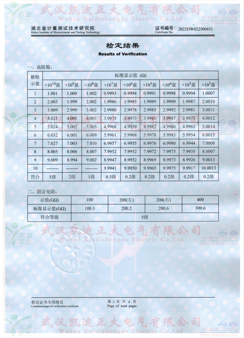 參照JJG1072-2011《直流高壓高值電阻器》檢定要求,ZX119-10絕緣電阻表檢定裝置(兆歐表檢定裝置)獲得證書2022DW022500651檢定證書,高阻箱符合檢定規程。