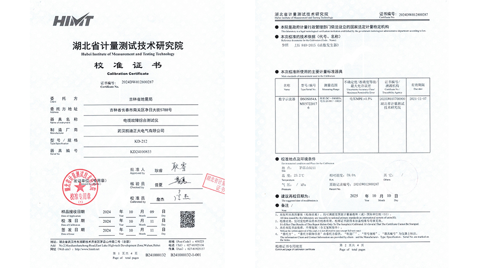 KD212電纜故障測試儀通過嚴檢,助力吉林地震局