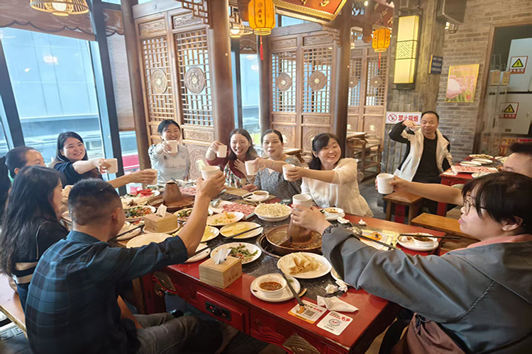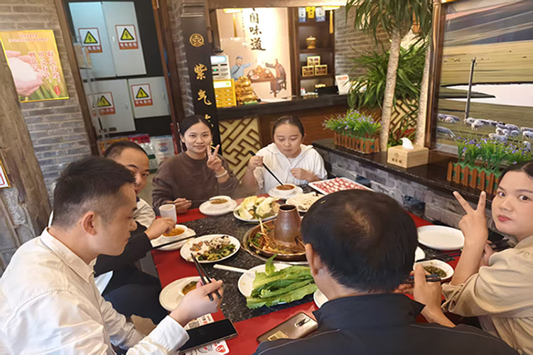鮮嫩的羊肉、豐富的配菜陸續上桌,大家舉箸暢談,歡聲笑語與鍋底的沸騰聲交織。平日里在不同崗位忙碌的同事們,此刻圍坐一桌,卸下了工作的緊張,交流著生活中的趣事,暢談著對未來的展望。公司領導們也融入其中,親切地與每一桌的員工交流,向大家致以節日的問候,并感謝大家近期的辛勤努力。筷子起落間,不僅是美味的傳遞,更是情感的升溫與團隊的融合。這場羊肉火鍋宴,仿佛一個溫馨的大家庭聚會,暖了胃,更暖了心,將團隊凝聚力在這升騰的熱氣中推向新的高度。