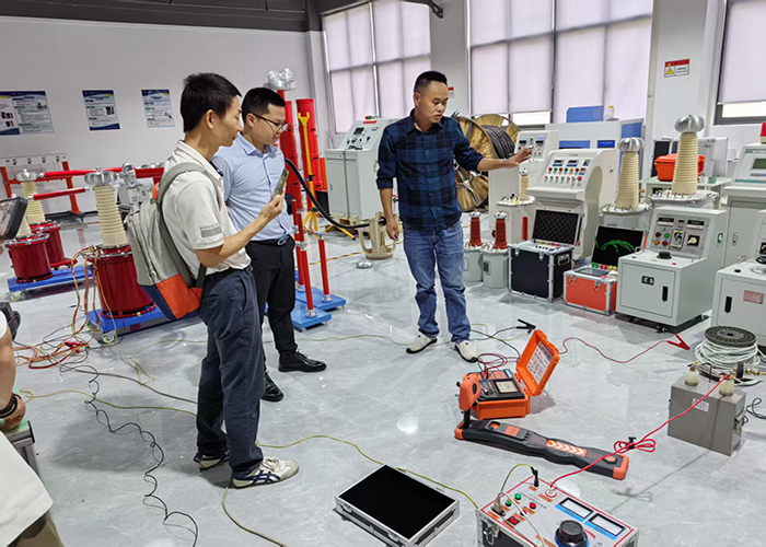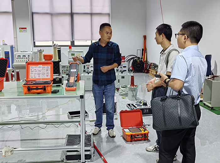 訪問伊始,代表團(tuán)在凱迪正大技術(shù)人員的陪同下參觀了產(chǎn)品展廳。展廳內(nèi)陳列著凱迪的系列產(chǎn)品,如:六相微機(jī)繼電保護(hù)測試儀、工頻耐壓試驗(yàn)裝置、回路電阻測試儀等等,展現(xiàn)了公司在電力測試領(lǐng)域的技術(shù)積累。技術(shù)人員詳細(xì)介紹了各產(chǎn)品的性能特點(diǎn)及應(yīng)用場景。