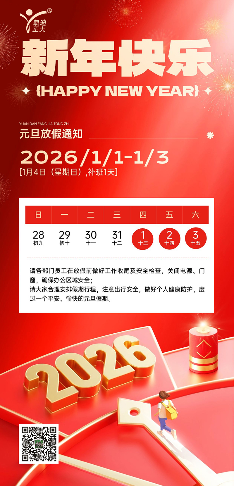 根據國家法定節假日安排,結合公司實際情況,現將武漢凱迪正大電氣2026年元旦放假安排及相關注意事項通知如下: