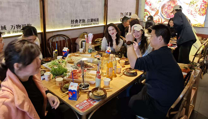 接近中午,陽光逐漸強烈,半天的體力勞動讓大家都感到些許疲憊,但每個人的臉上都帶著滿足的笑容。團隊一行轉場至附近的火鍋串串店,用一場熱氣騰騰的聚餐犒勞半日的辛勞。