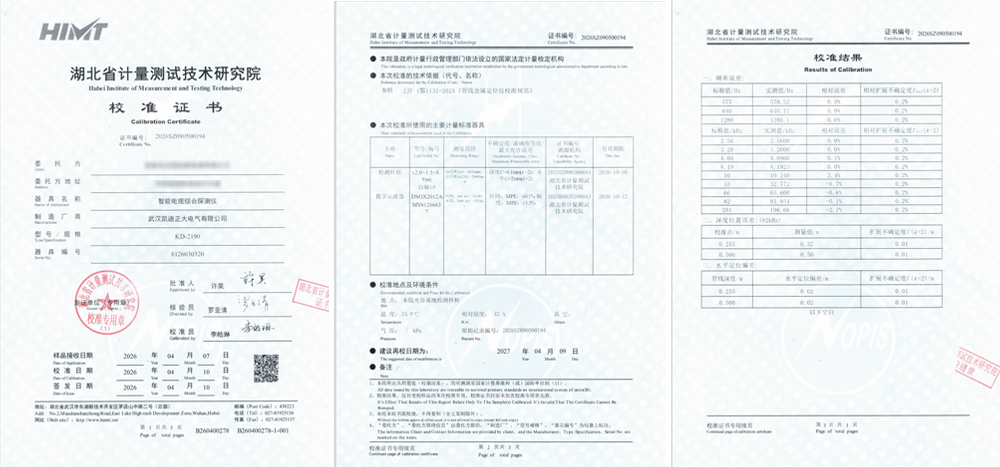 獲得省計量院校準證書—KD-2190智能電纜綜合探測儀,賦能管線運維全場景